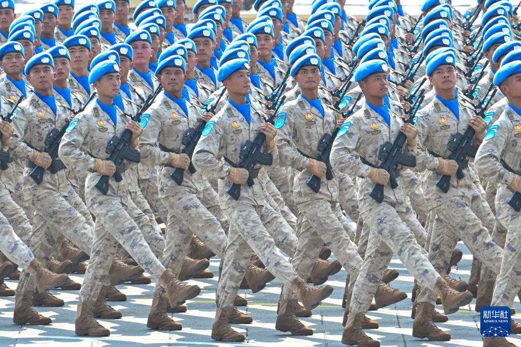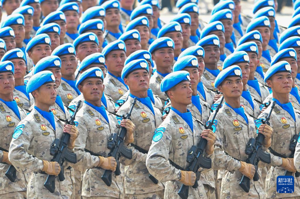 9月3日,纪念中国人民抗日战争暨世界反法西斯战争胜利80周年大会在北京隆重举行。这是维和部队方队接受检阅。