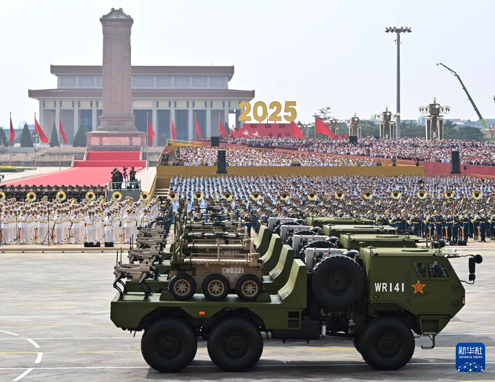 9月3日,纪念中国人民抗日战争暨世界反法西斯战争胜利80周年大会在北京隆重举行。这是陆上无人作战方队接受检阅。