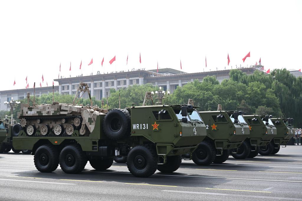 9月3日,纪念中国人民抗日战争暨世界反法西斯战争胜利80周年大会在北京隆重举行。这是陆上无人作战方队的装备。新华社记者 李嘉南 摄