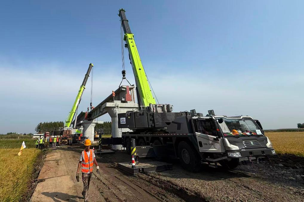 记者从中国铁路哈尔滨局集团有限公司获悉,9月5日,中欧班列“东通道”佳木斯至同江铁路扩能改造工程建设迎来关键节点:随着汽车吊将一片长32米、重134.3吨的预制T梁精准落位在同江特大桥墩台上,由中铁第五勘察设计院设计、中铁二十三局承建的佳木斯至同江铁路扩能改造工程同江特大桥进入架梁施工阶段。