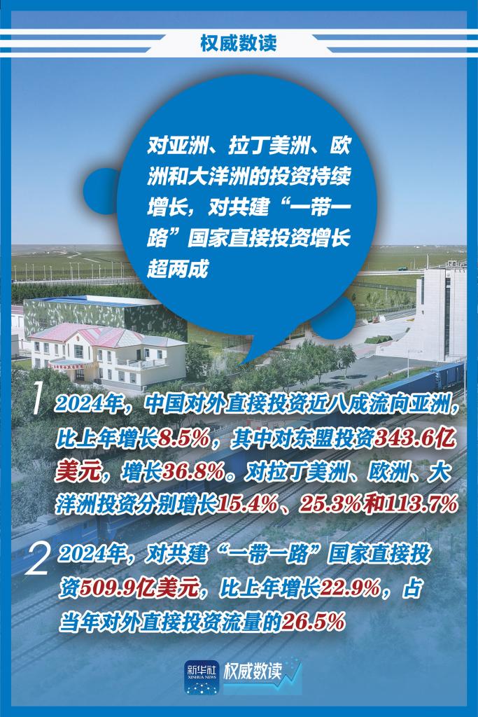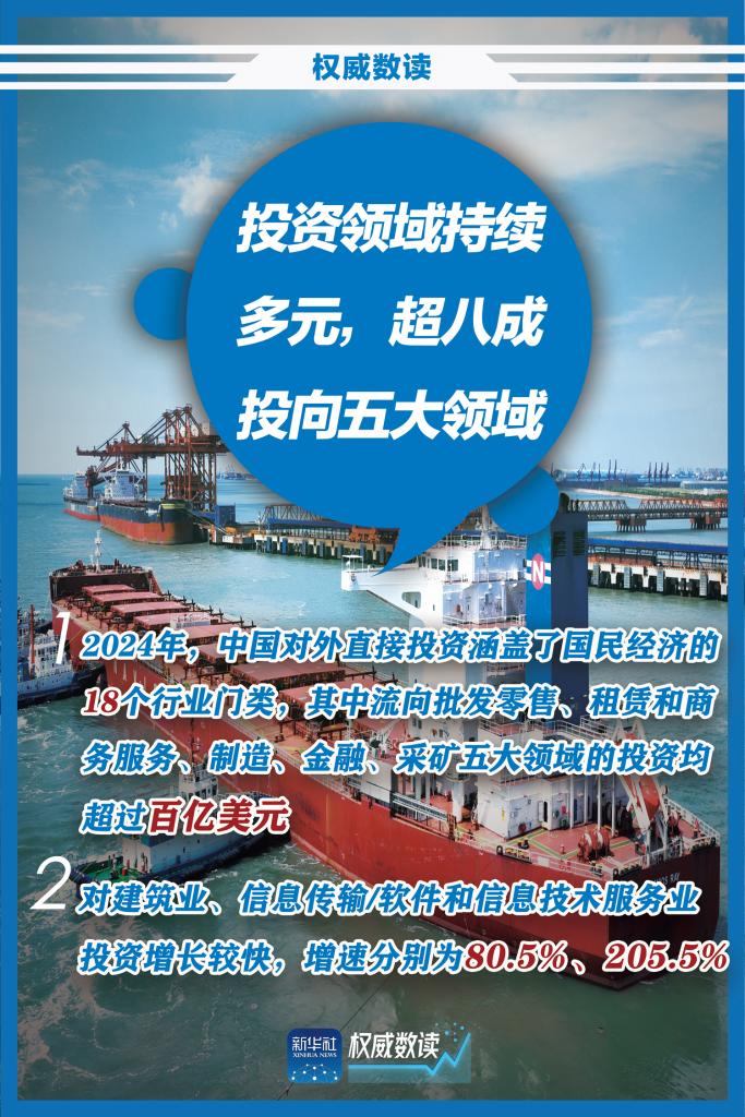 正在福建厦门举行的第二十五届中国国际投资贸易洽谈会上,商务部、国家统计局和国家外汇管理局联合发布《2024年度中国对外直接投资统计公报》,一组海报带你速览2024年中国对外直接投资“成绩单”。
