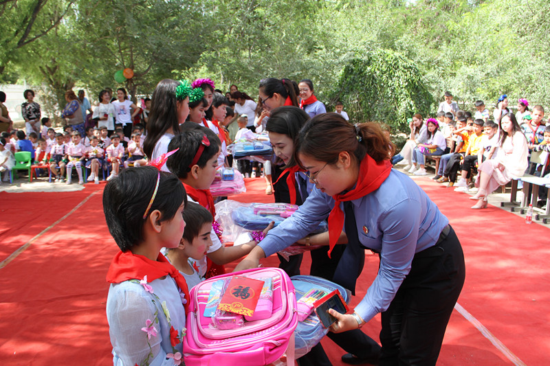 2019年6月1日,新疆阿克苏地区拜城县“检察官妈妈”们与孩子们共庆“六一”国际儿童节。(拜城县检察院供图)