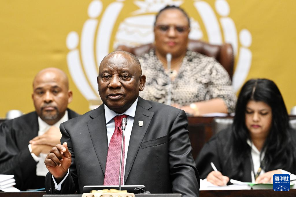 9月9日,在南非开普敦,南非总统拉马福萨在南非国民议会回答议员提问。新华社发(哈比索·姆卡贝拉摄)