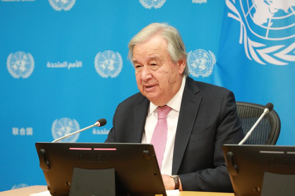 9月9日,联合国秘书长古特雷斯在美国纽约联合国总部的记者招待会上谴责以色列袭击卡塔尔。新华社记者 谢锷 摄