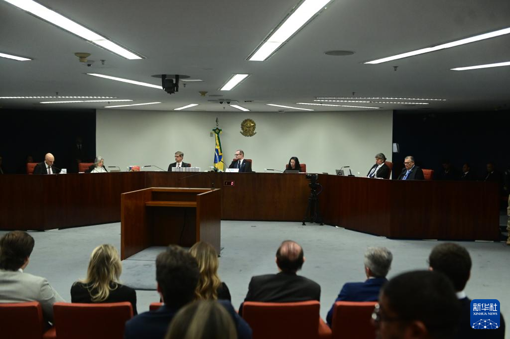 9月11日,在巴西首都巴西利亚,巴西联邦最高法院对前总统博索纳罗策划政变案进行审理。新华社发(卢西奥·塔沃拉摄)
