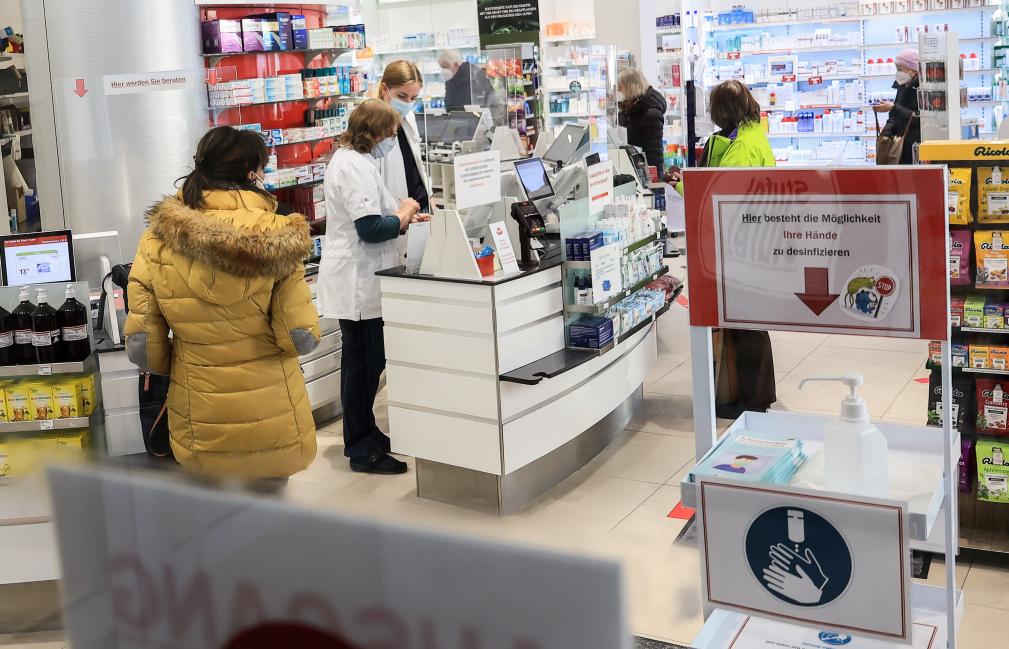 2021年1月15日,在德国慕尼黑,人们在一家药店购买药品。新华社发(菲利普·鲁伊兹摄)