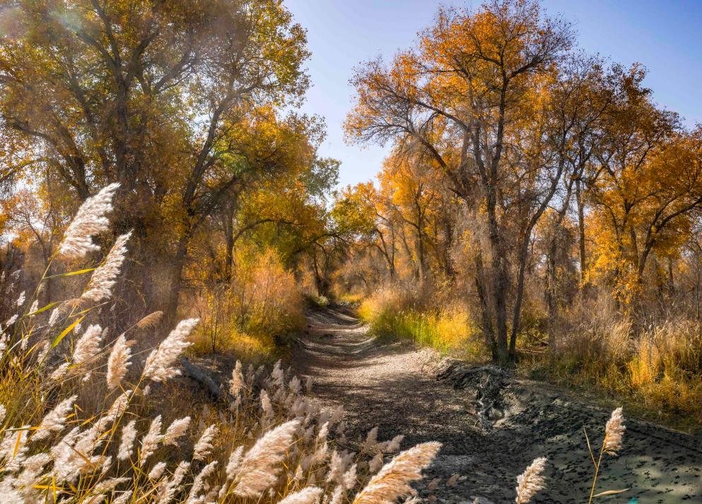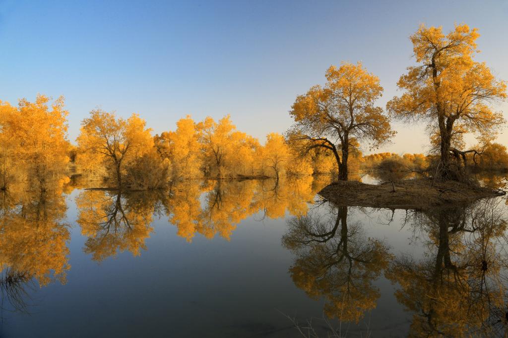 新疆分布着我国面积最大的胡杨林,其中大部分集中在塔里木河流域。每年九月中旬,这片胡杨林开始转黄,十月中旬前后进入最佳观赏期。
