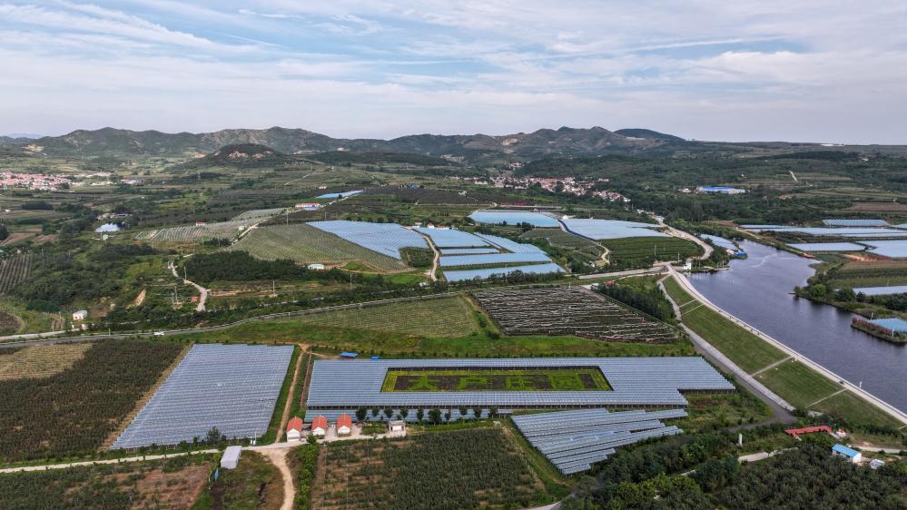 9月21日无人机航拍的山东省招远市大户陈家村葡萄种植园。新华社记者徐速绘 摄