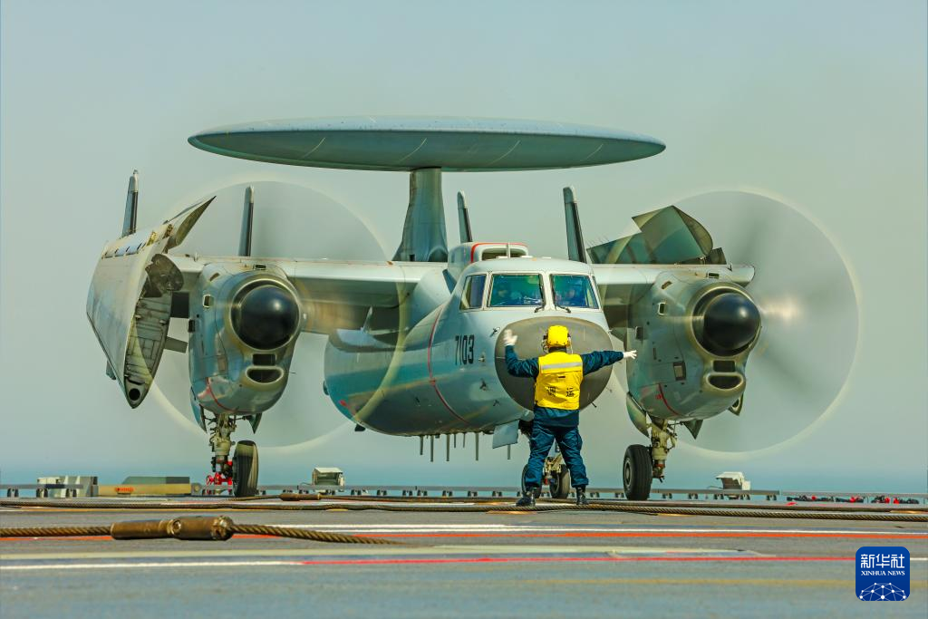 空警-600舰载预警机在福建舰阻拦着舰(资料照片)。新华社发(李唐 摄)