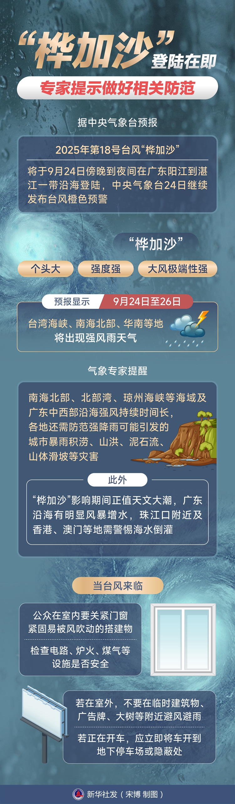 新华社北京9月24日电 题:“桦加沙”登陆在即 专家提示做好相关防范