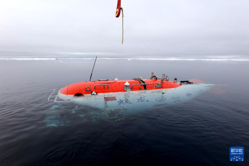 “蛟龙”号在北极冰区下潜(8月6日摄)。新华社记者 刘诗平 摄