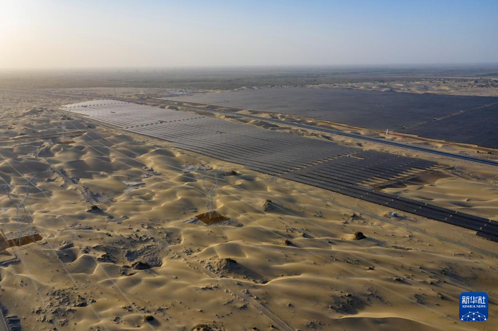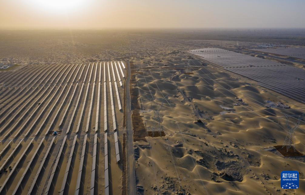昔日的戈壁荒漠,如今由太阳能光伏板汇聚成“蓝色海洋”,由风力发电机组成“白色森林”,正孕育着无限“风光”。