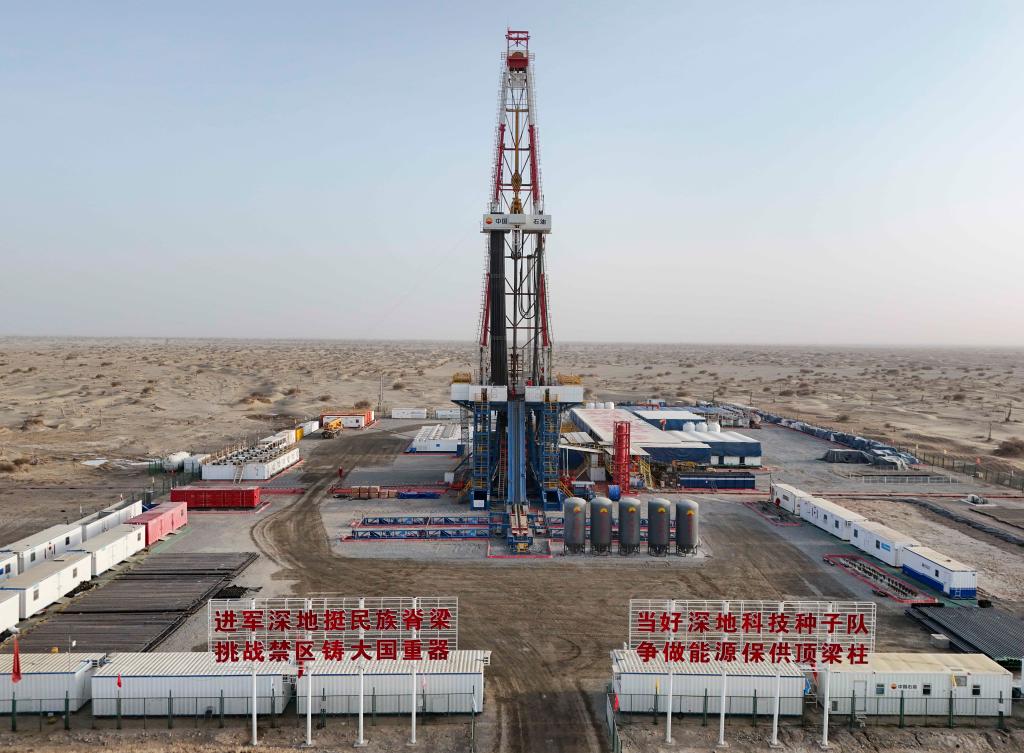 这是2025年2月20日在新疆塔克拉玛干沙漠腹地拍摄的中国石油塔里木油田深地塔科1井。当日,我国首口超万米科探井胜利完钻。