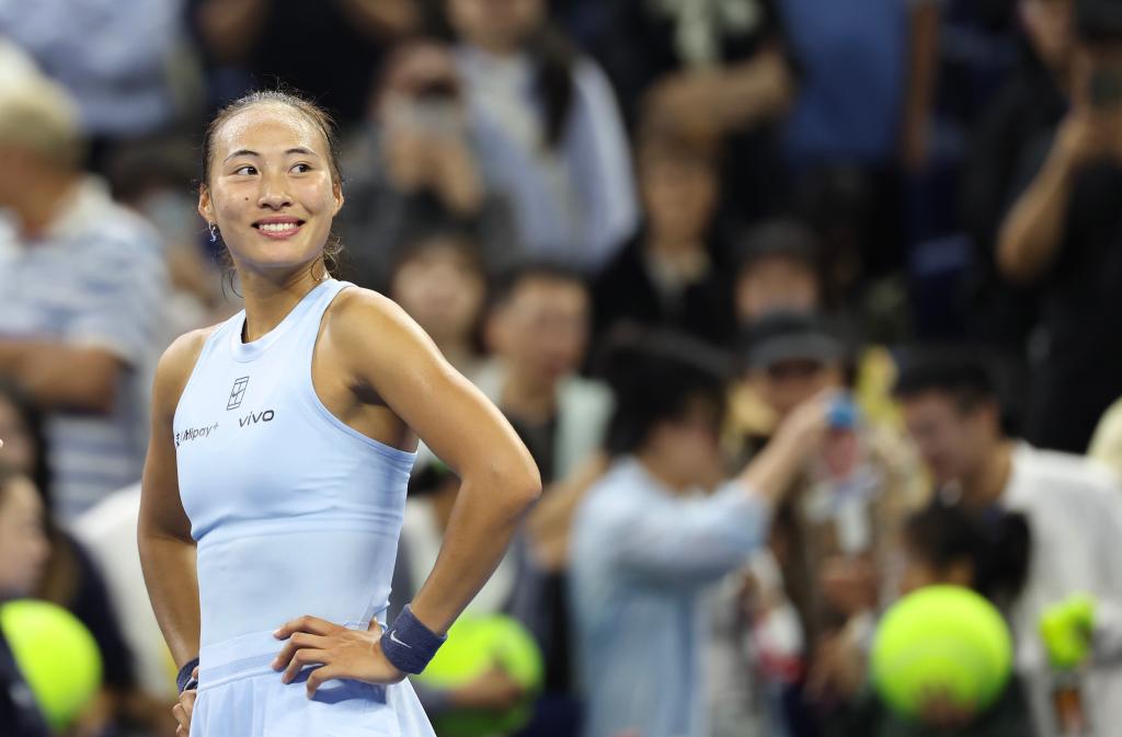 9月27日,郑钦文在比赛后。新华社记者 白雪飞 摄