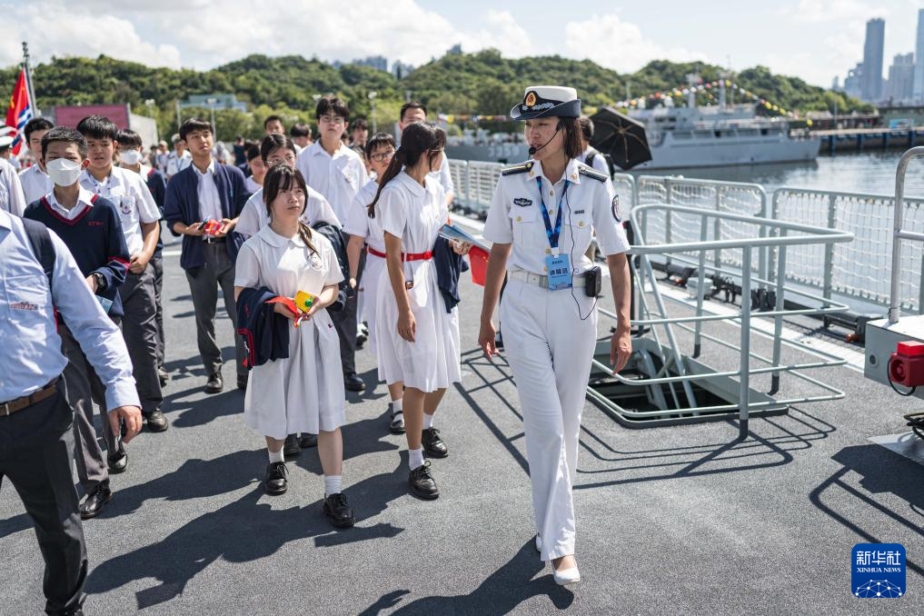 两舰抵达当日,香港学生曹欣悦登上军舰参观。听完讲解员的介绍,10岁的她兴奋地告诉记者:“在一望无际的大海上,舰艇居然还能收到电视信号,太神奇了!这说明国家的科技很厉害。长大以后我想从事和科技有关的工作。”