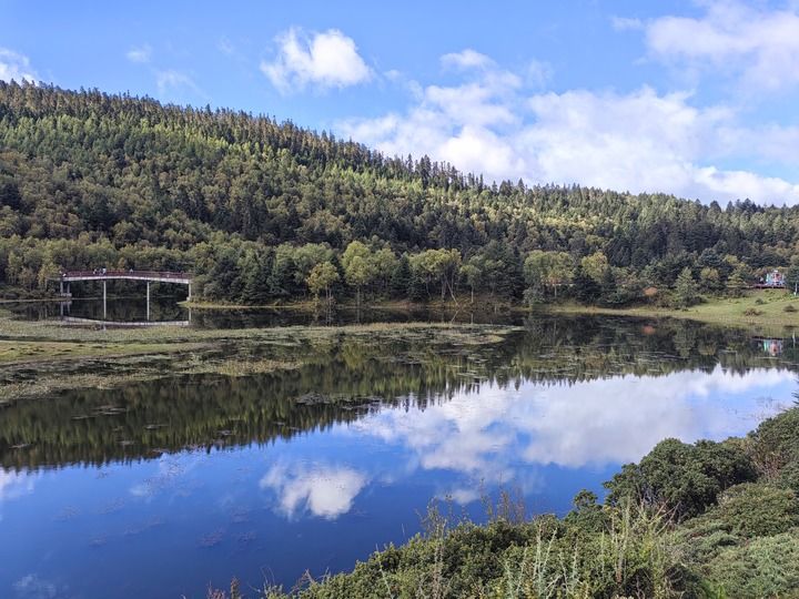 在位于云南省香格里拉市的石卡雪山,环视四方,俯瞰山势,可清晰地看到植被的层次过渡,不同的植物铸就了石卡雪山丰富的垂直带谱景观。沿着山川的轮廓,香格里拉也让世界见证了丰富的生物多样性,比如同样拥有复合生态系统的普达措景区:森林、湖泊、冰川、沼泽等多元生态场景,为多种珍稀濒危及保护植物物种、国家重点保护野生动物等提供了生长与栖息的“住所”。