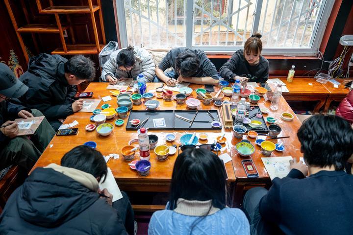 传统和现代在这里实现了“良好的沟通”。曾经马帮如织、贸易频繁的独克宗古城,是茶马古道滇藏线的咽喉枢纽,催生了马帮驿站、会馆等业态。历史进程中,各民族交融共生。如今的古城里,传统藏式建筑之下生长着民宿、非遗文创小店、写真馆等新业态。