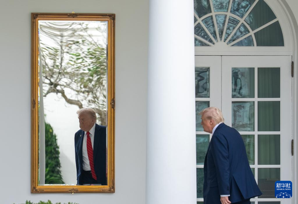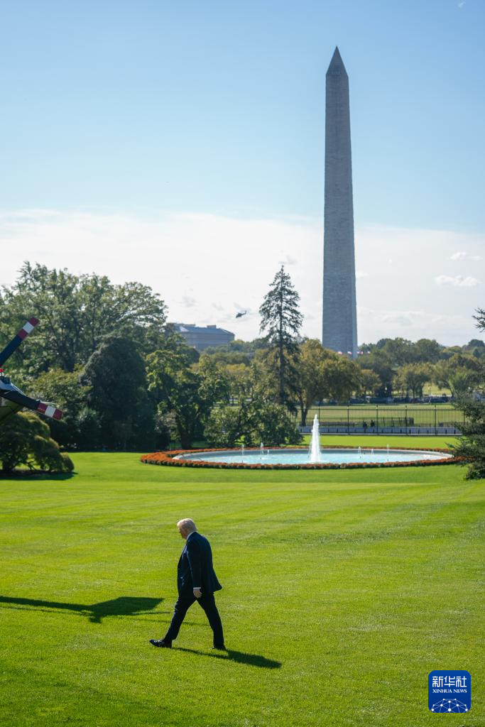 10月10日,在美国首都华盛顿,美国总统特朗普准备乘直升机离开白宫。新华社记者 胡友松 摄