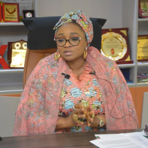 10月10日,尼日利亚妇女事务部长伊曼·苏莱曼-易卜拉欣在赴华参加全球妇女峰会前在位于首都阿布贾的办公室接受新华社记者专访。新华社发(奥拉图恩吉·萨利尤摄)