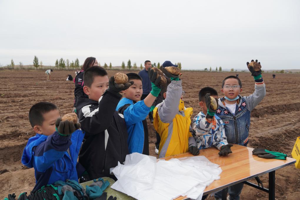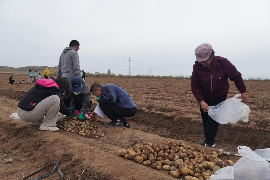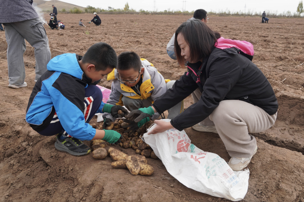 10月12日,游客在内蒙古锡林郭勒盟太仆寺旗捡土豆。(受访单位供图)
