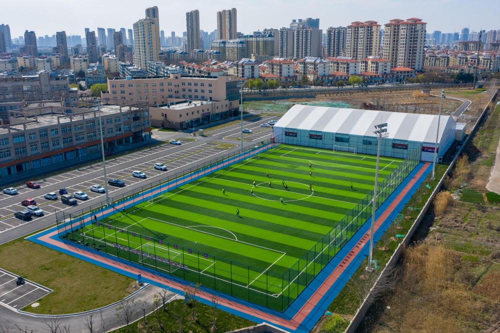 这是2021年3月17日拍摄的江苏省淮安市国联西坝体育公园(无人机拍摄)。新华社记者 李博 摄