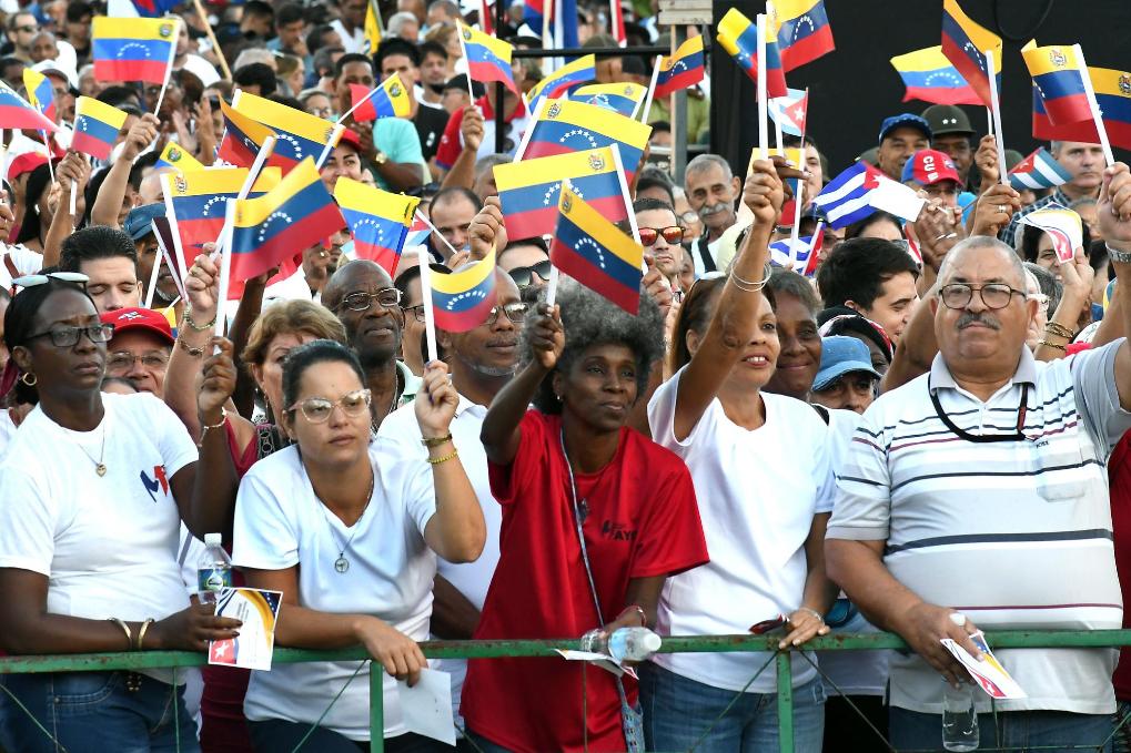 10月17日,5万多古巴民众聚集在首都哈瓦那总统大道的西蒙·玻利瓦尔雕像前,抗议美国军事威胁委内瑞拉,表达对委内瑞拉人民和政府的坚定支持。新华社发(华金·埃尔南德斯摄)