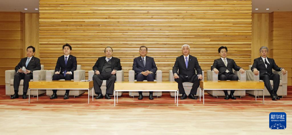 10月21日,在日本东京的首相官邸,日本首相石破茂(中)与内阁成员出席内阁会议。新华社/共同社