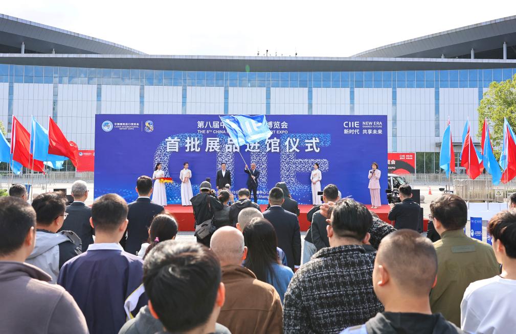 10月23日,第八届中国国际进口博览会首批展品进馆仪式在国家会展中心(上海)北广场举行。首批展品集中在技术装备展区、农食产品展区和医疗展区,第八届进博会企业商业展正式进入布展阶段。 新华社记者 方喆 摄