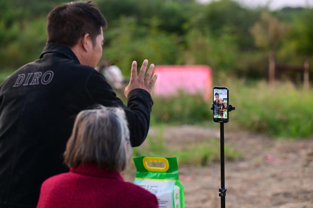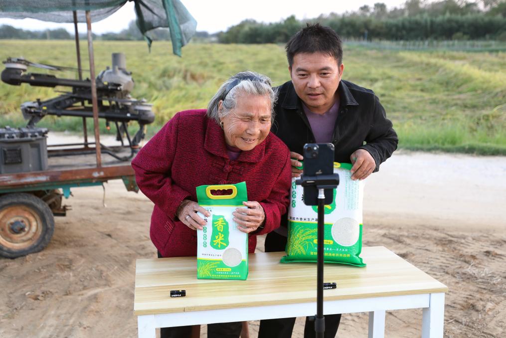 王甜甜(左)和戴淑英一起拍摄短视频。