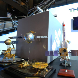 这是2025年4月8日在位于泰国是拉差县的泰国地理信息学与太空技术发展局拍摄的展出的部分航天模型。新华社发(拉亨摄)