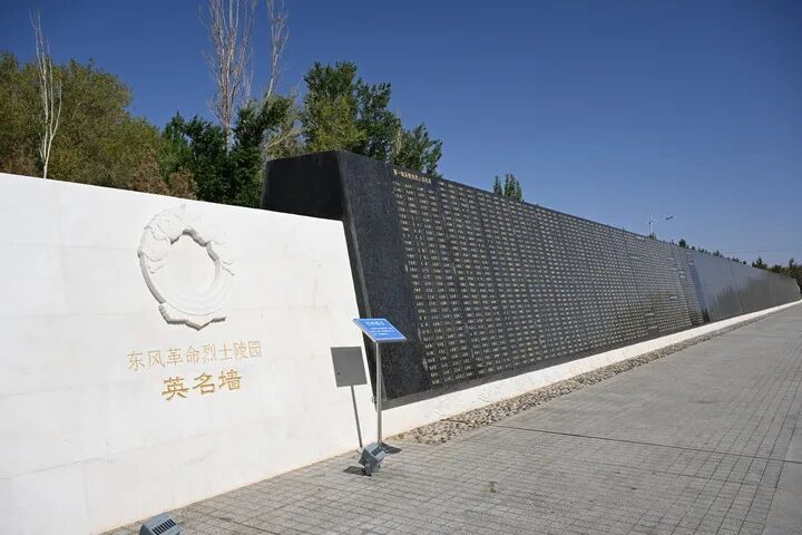 在酒泉卫星发射中心东风革命烈士陵园拍摄的英名墙。新华社记者 贝赫 摄