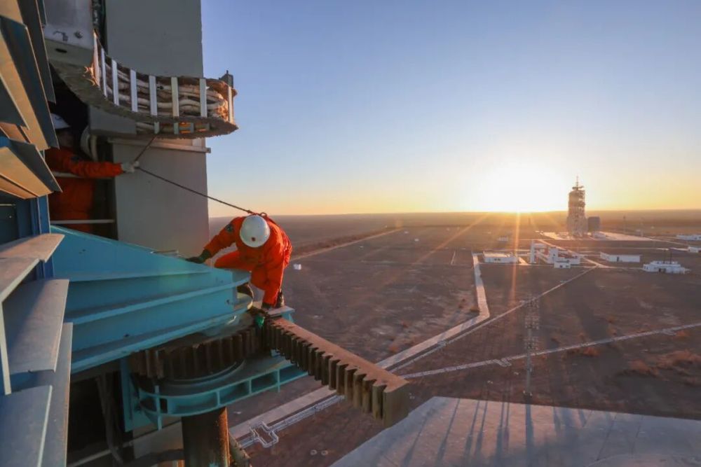 酒泉卫星发射中心平台工作人员更换回转平台齿轮油(2020年12月24日摄)。新华社发(姚军鹏 摄)