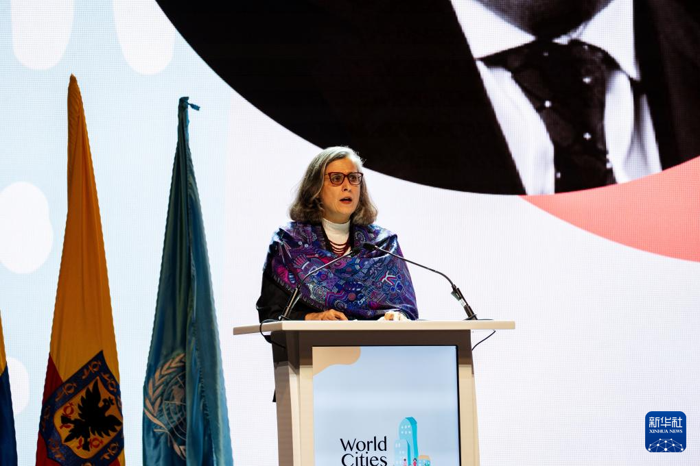 10月31日,在哥伦比亚波哥大,联合国人类住区规划署(人居署)执行主任阿纳克劳迪娅·罗斯巴赫在2025年世界城市日全球主场活动上讲话。新华社记者 许咏政 摄
