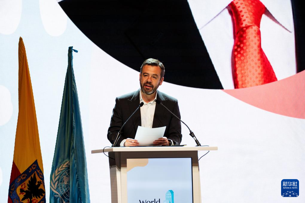 10月31日,在哥伦比亚波哥大,波哥大市长卡洛斯·费尔南多·加兰在2025年世界城市日全球主场活动上讲话。新华社记者 许咏政 摄