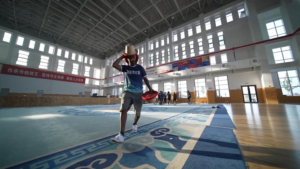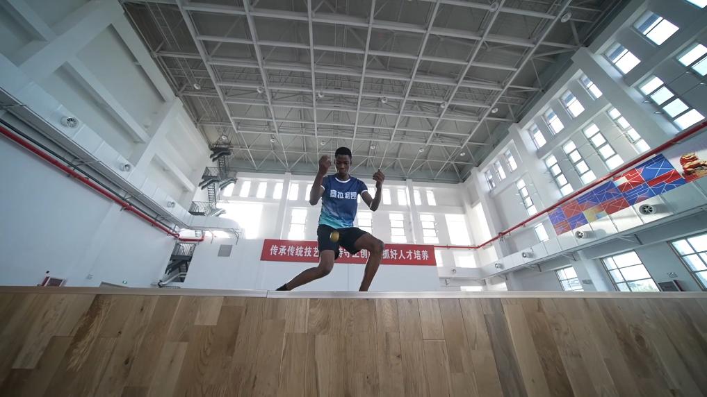 在吴桥杂技艺术学校的排练厅里,来自塞拉利昂的小伙穆罕默德正在训练。这是穆罕默德第一次来到中国,吴桥浓厚的艺术氛围、当地人的热情好客,让初来乍到的他很快便融入了这里的生活。