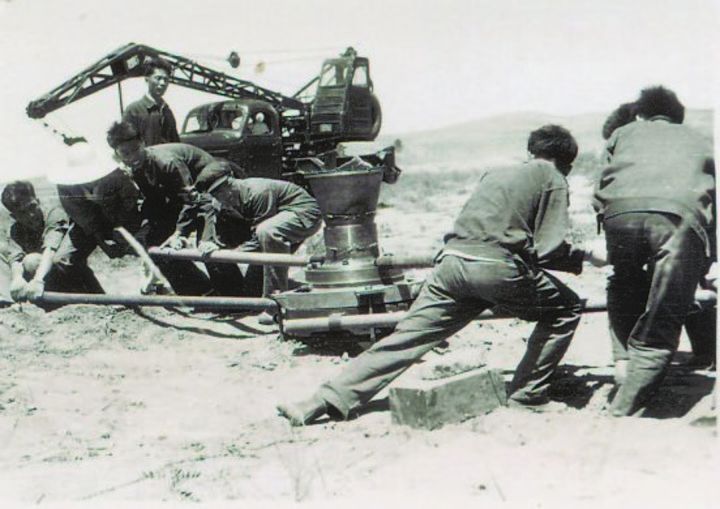 1966年8月,四院人在呼和浩特南地野外进行发动机试验准备。图片由中国航天科技集团第四研究院供图