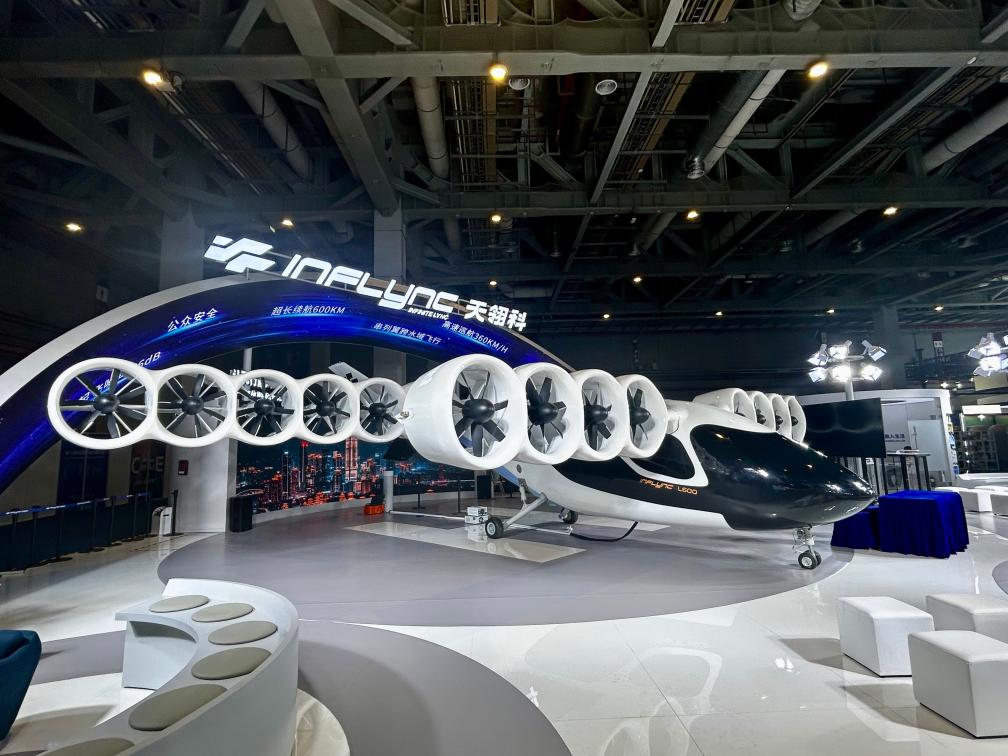 第一次参加进博会的天翎科,展示了一架造型吸睛的混动增程eVTOL。新华社记者王鹤 摄
