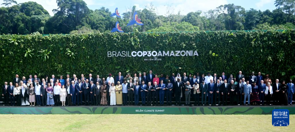 11月7日,与会嘉宾在巴西贝伦气候峰会上合影。新华社发(卢西奥·塔沃拉摄)
