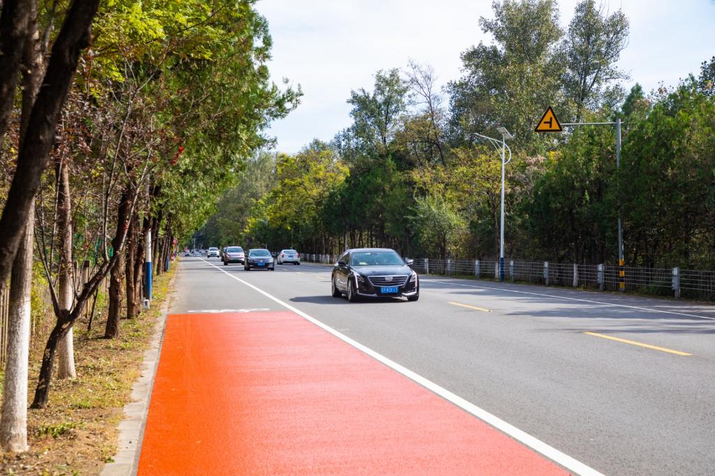 图为怀黄路创设骑行道。(北京市交通委供图)