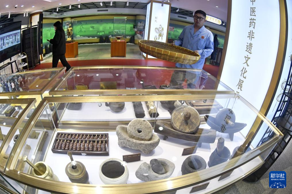 11月13日拍摄的同仁堂大栅栏药店非遗展示空间内的传统制药文物展区。