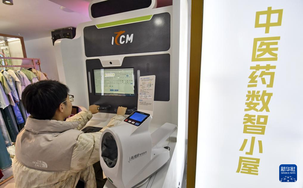 11月13日,顾客在同仁堂大栅栏药店体验融合AI技术的中医药数智小屋。