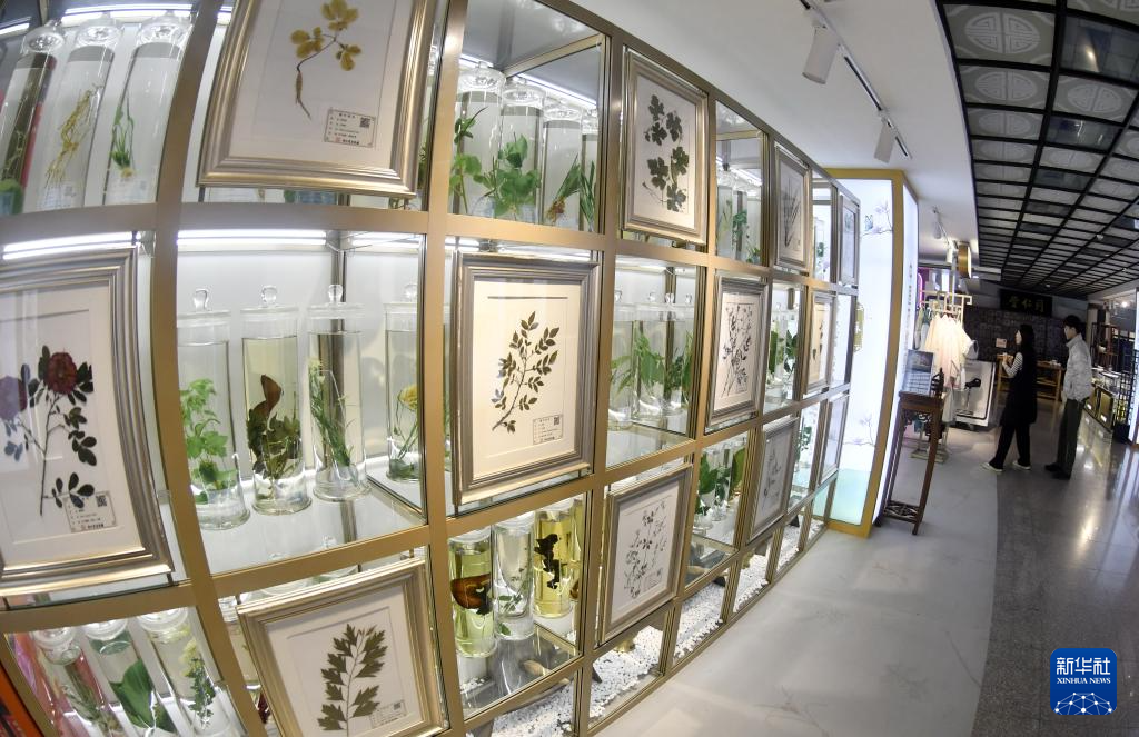 11月13日拍摄的同仁堂大栅栏药店非遗展示空间内的药材标本区。