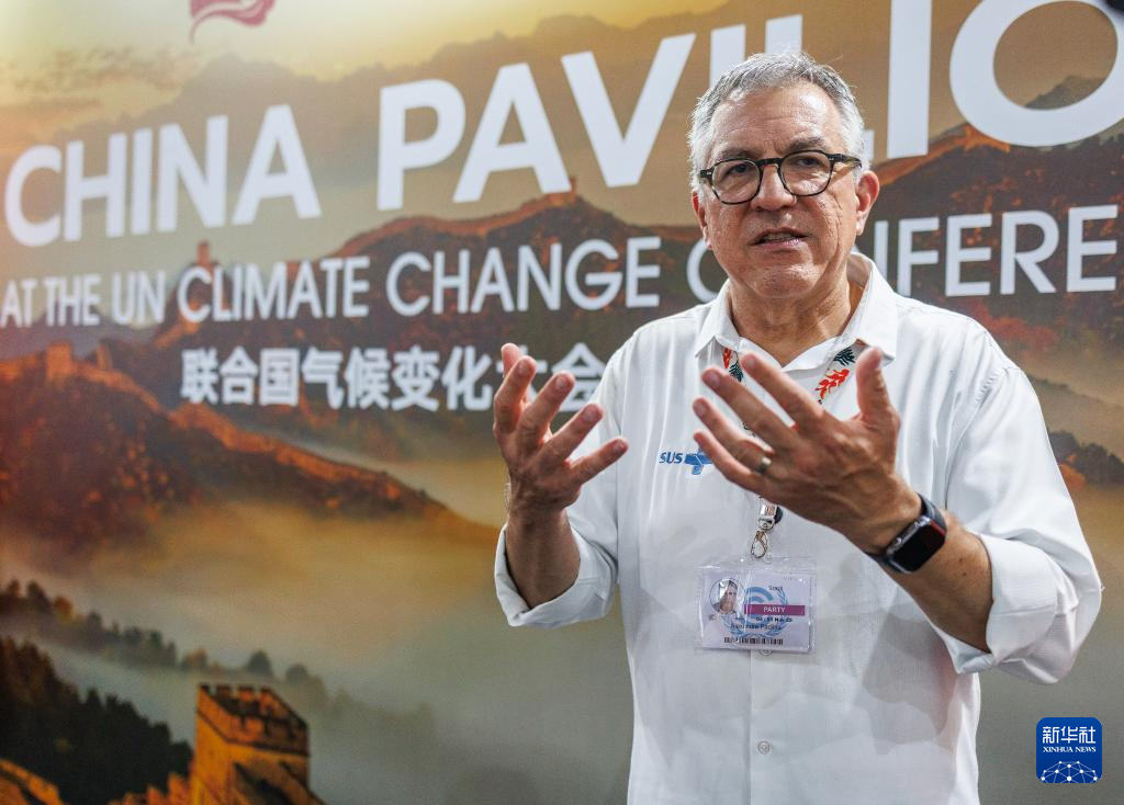 11月14日,在巴西贝伦举行的《联合国气候变化框架公约》第三十次缔约方大会(COP30)上,巴西卫生部长帕迪利亚接受新华社记者采访。新华社发(克劳迪娅·马尔提尼摄)