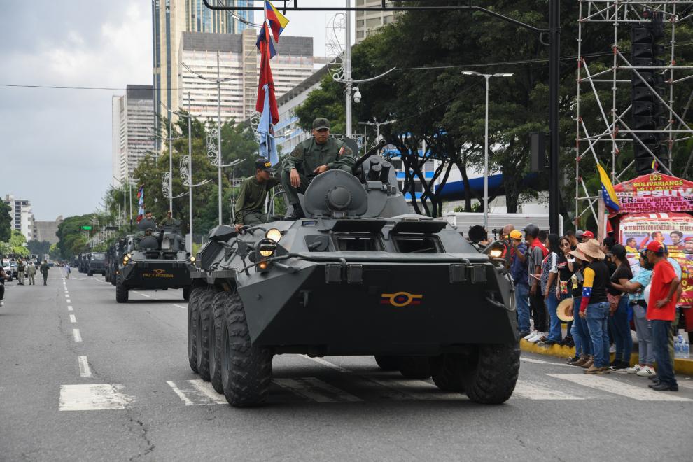 9月23日,在委内瑞拉首都加拉加斯,参加游行的装甲车辆列队行进。当天,加拉加斯举行大规模游行,呼吁保卫委内瑞拉主权与和平,反对美国在加勒比海域的军事威胁。新华社发(马科斯·萨尔加多摄)