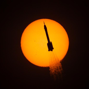 这是11月25日使用日珥镜拍摄的火箭凌日瞬间。11月25日,搭载神舟二十二号飞船的长征二号F遥二十二运载火箭,在酒泉卫星发射中心点火发射。神舟二十二号飞船与长征火箭成功分离并进入预定轨道,发射任务取得圆满成功。这是中国载人航天工程第一次应急发射任务。新华社记者 张斌 摄