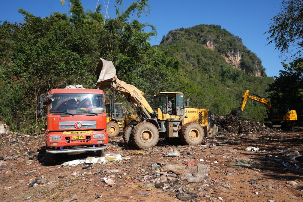 11月29日,当地调配专业人员和机械设备开展垃圾清运工作。新华社记者 陈欣波 摄