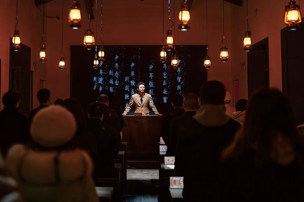 步入《恰同学少年》青春剧场,观众们瞬间走进历史,与百年前的学子成为同学——或在图书馆里讨论“二十八画生”的征友启事,或在教室诵读《少年中国说》,又或是一起翻阅《新青年》……