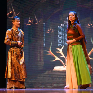 2024年5月30日,天津市儿童艺术剧团演员在河北区少年宫表演儿童戏剧《敦煌·九色鹿王》。新华社记者赵子硕 摄