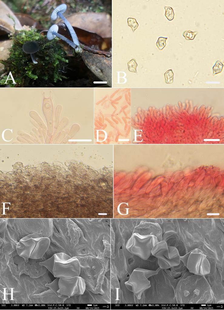 新华社福州12月10日电(记者张华迎)记者从福建省农业科学院食用菌研究所获悉,江西农业大学颜俊清副教授课题组联合该所曾辉研究员课题组,在武夷山国家公园发现一种大型真菌新物种——青鸾粉褶菌。该物种隶属于粉褶菌属蓝色亚属成员,其研究成果已发表于国际真菌学权威期刊《菌物检索》。