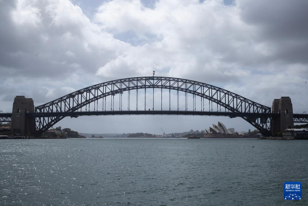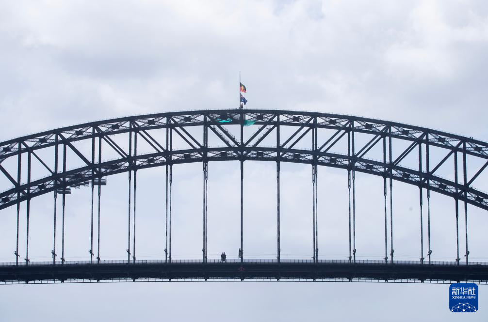12月15日,澳大利亚悉尼的海港大桥降半旗悼念邦迪滩枪击事件遇难者。新华社记者 马平 摄